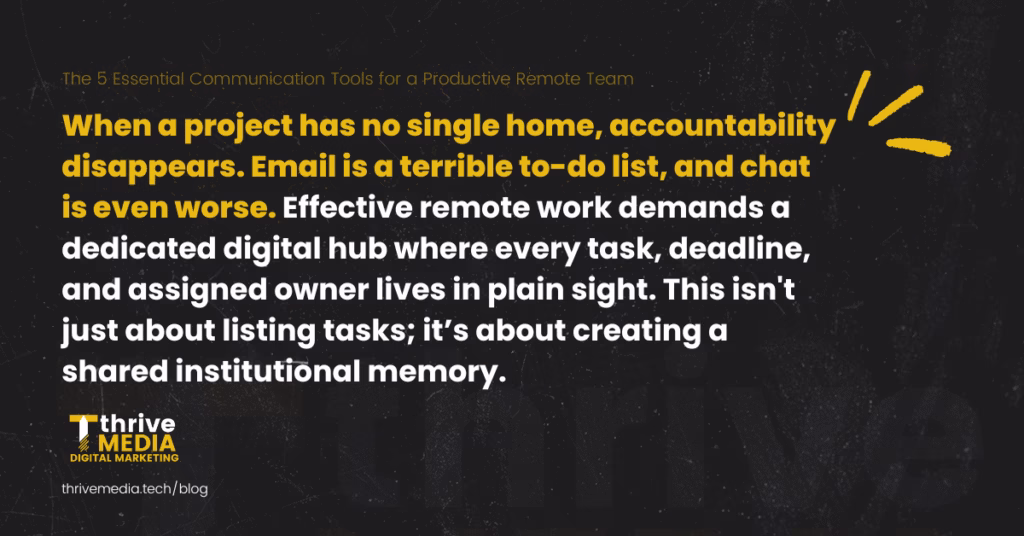 When a project has no single home, accountability disappears. Email is a terrible to-do list, and chat is even worse. Effective remote work demands a dedicated digital hub where every task, deadline, and assigned owner lives in plain sight. This isn’t just about listing tasks; it’s about creating a shared institutional memory.