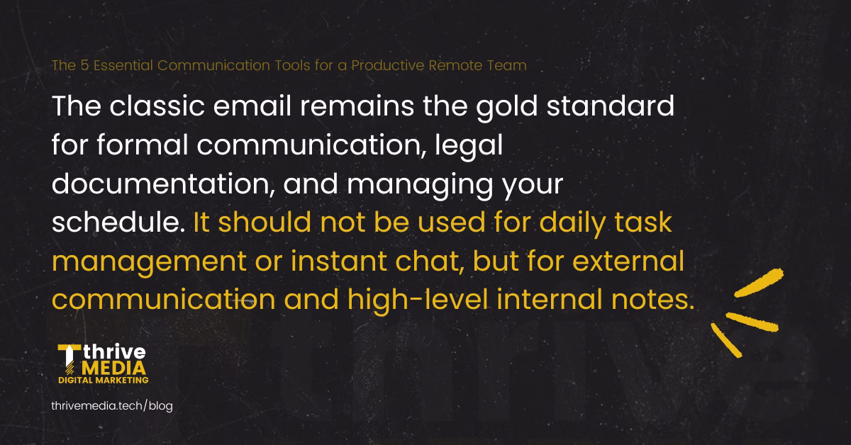 The classic email remains the gold standard for formal communication, legal documentation, and managing your schedule. It should not be used for daily task management or instant chat, but for external communication and high-level internal notes.