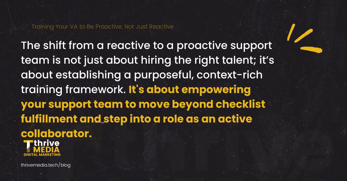 Building a proactive remote team requires a structured, multi-layered approach that emphasizes critical thinking and business acumen. This is where strategic virtual assistant onboarding becomes an engine for growth.