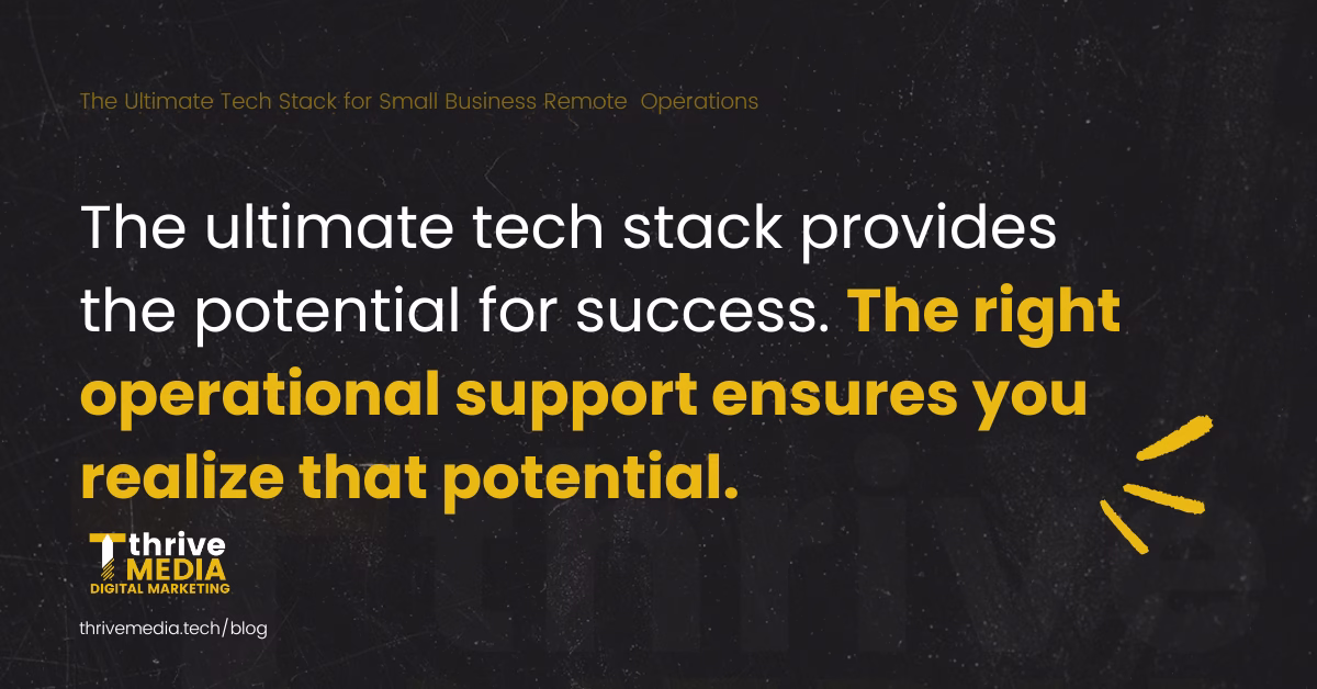 At Thrive Media Tech, we recognize that the best tools in the world are useless without expert hands to wield them. Our dedicated remote operations specialists are not simply task-takers; they are certified system administrators for the stack you just built. They manage the integrations, update the documentation, track the projects, and ensure the security protocols are being followed, all while giving you back the time to focus on what only you can do: grow your company.